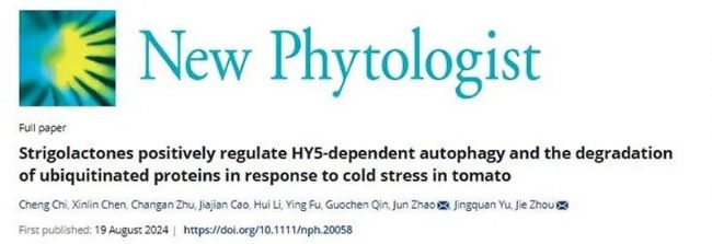隨著全球氣候變暖,極端天氣增加,植物經(jīng)常會面臨各種各樣的脅迫,嚴重影響其生長發(fā)育。低溫是一種主要脅迫,限制了許多作物的品質(zhì)和產(chǎn)量。而番茄作為一種喜溫性蔬菜,低溫會導(dǎo)致其生長發(fā)育停滯,花期延遲,坐果率顯著降低。在整個進化過程中,植物已經(jīng)發(fā)展出多種抵御寒冷的機制,其中植物激素調(diào)節(jié)起著至關(guān)重要的作用。同時,自噬參與蛋白質(zhì)降解和氨基酸循環(huán),在植物發(fā)育和逆境反應(yīng)中起著關(guān)鍵作用。然而,自噬與植物激素之間的關(guān)系尚不清楚。2024年8月19日,New Phytologist在線發(fā)表浙江大學周杰教授和北京大學現(xiàn)代農(nóng)業(yè)研究院趙珺博士聯(lián)合署名標題為Strigolactones positively regulate HY5-dependent autophagy and the degradation of ubiquitinated proteins in response to cold stress in tomato的研究論文。