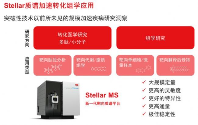賽默飛一直致力于更好地服務(wù)開創(chuàng)人類健康未來的科學(xué)家,包括全新一代Thermo Scientific™ Stellar™質(zhì)譜儀在內(nèi)的新一代蛋白質(zhì)組學(xué)工作流程,為廣大科學(xué)家們量身定制了從樣品自動(dòng)制備、納流液相色譜、離子淌度到人工智能增強(qiáng)型數(shù)據(jù)處理軟件的無所不包的一流實(shí)驗(yàn)室配置。這意味著廣大用戶在在實(shí)驗(yàn)過程中,從硬件到軟件的無縫銜接,也意味著蛋白質(zhì)組學(xué)從發(fā)現(xiàn)組學(xué)到臨床發(fā)現(xiàn)驗(yàn)證的無縫銜接。