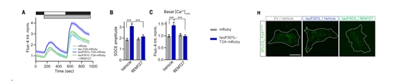 圖4,tauP301L顯著增加細(xì)胞內(nèi)鈣濃度和SOCE的振幅REM127能夠恢復(fù)這些指標(biāo)