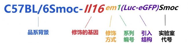 如:C57BL/6Smoc-Trp53em5Smoc表示在Smoc實(shí)驗(yàn)室對Trp53基因進(jìn)行的第5次突變。