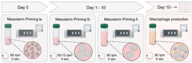 利用臺(tái)式生物反應(yīng)器平臺(tái)在完全定義條件下標(biāo)準(zhǔn)化生成來(lái)源于人類(lèi)iPSC的造血類(lèi)器官和巨噬細(xì)胞