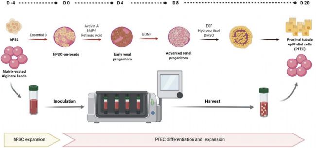 人類(lèi)多能干細(xì)胞在動(dòng)態(tài)培養(yǎng)系統(tǒng)中功能性分化及可擴(kuò)展生產(chǎn)腎臟近端小管上皮細(xì)胞