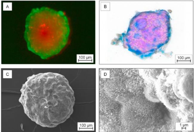 C) 類(lèi)胚體的掃描電鏡圖像;