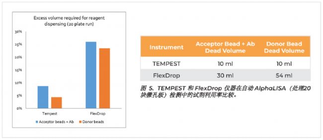 TEMPEST儀器采用的微流控隔膜泵技術(shù)使AlphaLISA試劑的充注量減少了3-5倍(圖5),同時(shí)保持了PK/PD研究所需的檢測性能和重復(fù)性。