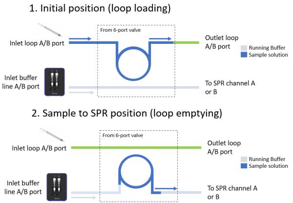 表面等離子體共振儀器可以提供例如動力學(xué)、親和力和濃度等豐富的信息。P4SPR分子互作儀具有兩種不同類型的設(shè)置,可以進(jìn)行靜態(tài)和動力學(xué) SPR 分析。在靜態(tài)系統(tǒng)中,樣品溶液通過注射器手動引入流動池并通過擴(kuò)散與表面發(fā)生相互作用。在動力學(xué)系統(tǒng)中,(通過手動注射器或自動進(jìn)樣器)將樣品溶液先裝入樣品環(huán),然后通過注射泵將運行緩沖液流過樣品環(huán),將樣品引入流動池中。