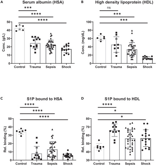 載體分子濃度:與對(duì)照組相比,患者血漿中 HSA 和 HDL 的濃度均顯著降低,感染性休克患者血漿中這兩種物質(zhì)的含量最低 。