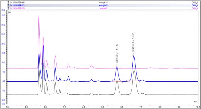 (Charged Aerosol Detector; CAD)是賽默飛一款新型的質(zhì)量型通用檢測器,它靈敏度高,重復(fù)性好,線性范圍寬,對非揮發(fā)和半揮發(fā)的化合物均有良好響應(yīng),為無紫外吸收和弱紫外吸收化合物的液相分析提供了新的利器,是UV檢測器的黃金搭檔。