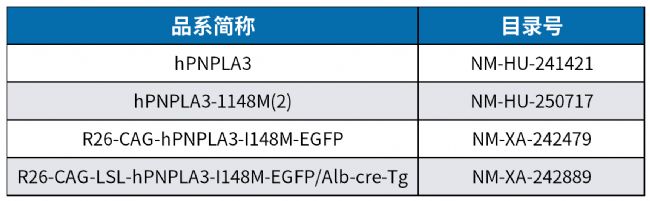表2. PNPLA3相關(guān)靶點(diǎn)人源化小鼠