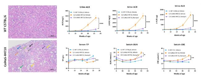 圖2. 利用Col4a5-R471X小鼠模型模擬Alport綜合征