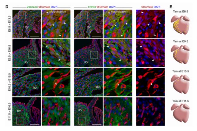 [1] Li Y, Lv Z, He L, et al. Genetic Tracing Identifies Early Segregation of the Cardiomyocyte and Nonmyocyte Lineages. Circ Res. 2019;125(3):343-355. doi:10.1161/CIRCRESAHA.119.315280.