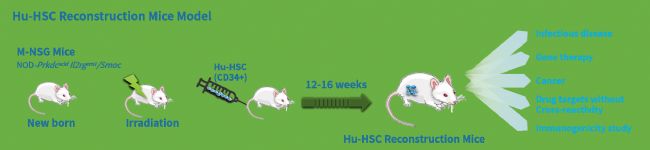 Hu-HSC:通過移植CD34+/造血干細胞(hsc)至重度免疫缺陷小鼠體內(nèi)構(gòu)建。