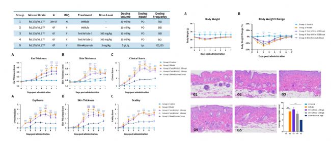 圖14. IMQ誘導(dǎo)的人源化小鼠hIL17A/hIL17F構(gòu)建Psoriasis模型