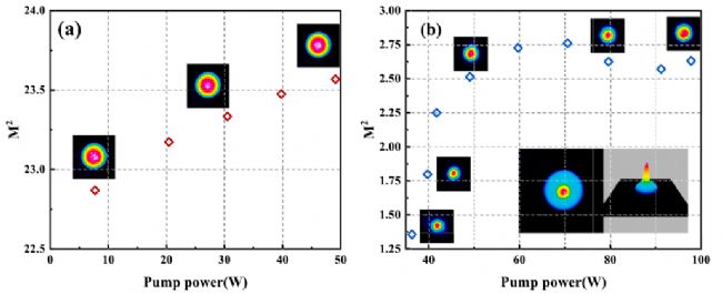 輸出光譜呈現(xiàn)出多個(gè)峰值,并且在出現(xiàn)第二階拉曼斯托克斯峰后,激光器會(huì)周期性地波動(dòng)。此外,建立了光譜變化與光束質(zhì)量之間的相關(guān)性。這種現(xiàn)象在未來(lái)可能被用作評(píng)估激光輸出光束質(zhì)量的有效方法。