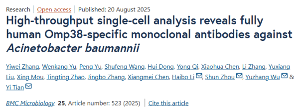 Zhang, Y., Yu, W., Yu, P. et al. High-throughput single-cell analysis reveals fully human Omp38-specific monoclonal antibodies against Acinetobacter baumannii. BMC Microbiol 25, 523 (2025). https://doi.org/10.1186/s12866-025-04283-y
