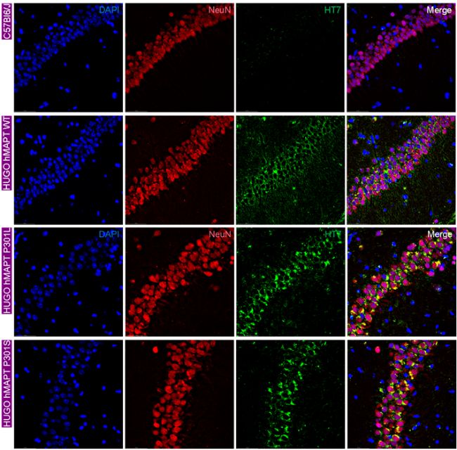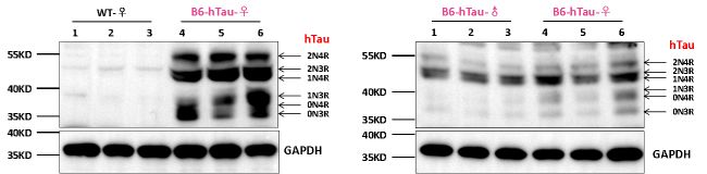B6-hTau小鼠、B6-hTau*P301L小鼠和B6-hTau*P301S小鼠海馬中成功表達(dá)人源Tau蛋白