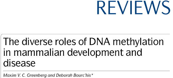 Greenberg MVC, Bourc'his D. The diverse roles of DNA methylation in mammalian development and disease. Nat Rev Mol Cell Biol. 2019 Oct;20(10):590-607. doi: 10.1038/s41580-019-0159-6.