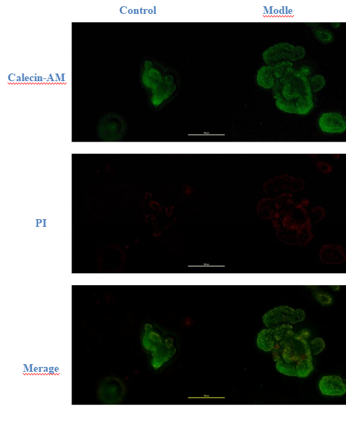 活死染顯示:與Control相比,Model類(lèi)器官活性有所減弱。