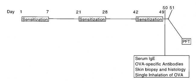 讀出:皮損評分、總/OVA特異性IgE/IgG1;組織學(xué)與細胞因子譜。