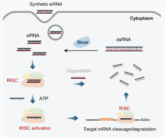 小干擾 RNA 是 RNA 干擾(RNAi)pathway 的激活先鋒。雙鏈結構的 siRNA 一旦潛入細胞,即刻被 Dicer 酶拆解成單鏈向導,融入 RISC 復合體,依循堿基互補鎖定目標 mRNA,催化其特異性裂解。肝炎治療賽道上,針對乙肝病毒 mRNA 的 siRNA 藥物高效沉默病毒復制關鍵基因,遏制病情進展,展現 RNAi 強大威力。
