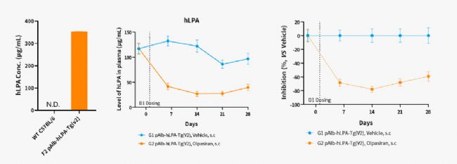 圖5. 血清hLPA蛋白水平及單次給藥后抑制率。(Data來自合作者)