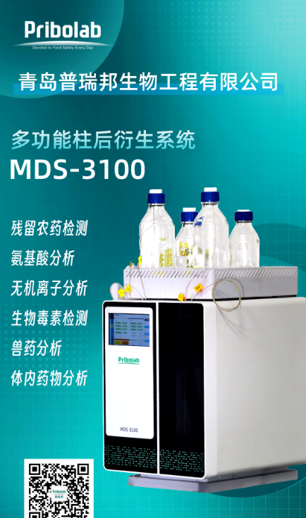 (Pribolab®MDS3000/3100多功能光電衍生系統(tǒng)將試劑衍生和光化學衍生集成于一體,采用雙流路通道,在試劑衍生和光衍生之間自動切換,有效提高檢測效率,將分析工作者從單一的試劑衍生和光衍生工作中解放出來,可對游離甲醛、氨基甲酸酯、草甘膦、六價鉻、黃曲霉毒素、伏馬毒素、河豚毒素、貝類毒素、;撬、游離甲醛等多種物質(zhì)進行衍生)
