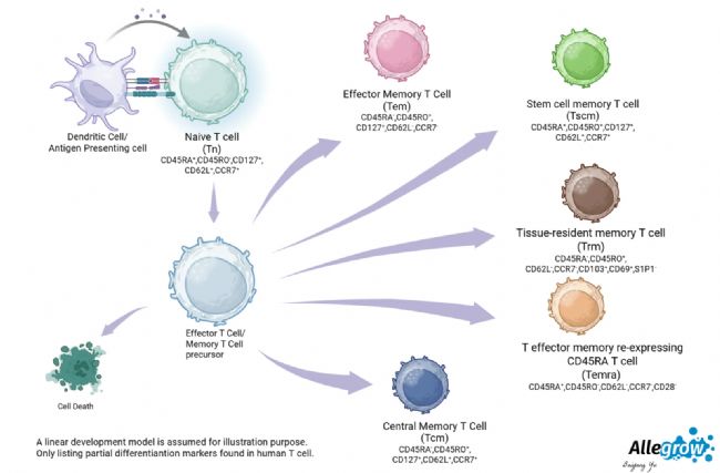 在免疫應(yīng)答過程中,一部分活化的T細(xì)胞會(huì)分化為記憶T細(xì)胞,以長(zhǎng)期保持對(duì)抗原的記憶。記憶T細(xì)胞包括中央記憶T細(xì)胞(Tcm)、效應(yīng)記憶T細(xì)胞(Tem)、組織駐留記憶T細(xì)胞(Trm)和干細(xì)胞記憶T細(xì)胞(Tscm)等亞群。