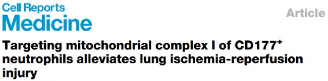 Wu J, Gao P, Yang C, et al.Targeting mitochondrial complex I of CD177+ neutrophils alleviates lung ischemia-reperfusion injury. Cell Rep Med. 2025 May 20;6(5):102140. doi: 10.1016/j.xcrm.2025.102140 . PMID: 40398393; PMCID: PMC12147905.