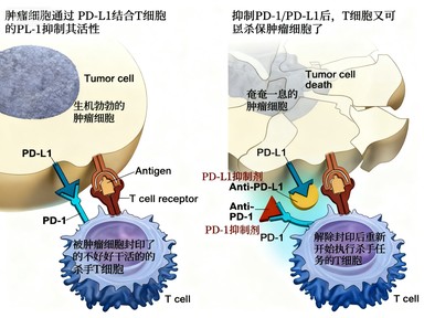 PD-1/PD-L1 抑制劑:PD-1 受體表達(dá)于活化 T 細(xì)胞表面,腫瘤細(xì)胞通過(guò)高表達(dá) PD-L1 與 PD-1 結(jié)合,傳遞 “免疫抑制信號(hào)”,抑制 T 細(xì)胞活化。PD-1/PD-L1 抑制劑可阻斷二者結(jié)合,解除 T 細(xì)胞的 “功能封印”,恢復(fù)其腫瘤殺傷能力,目前已獲批用于黑色素瘤、非小細(xì)胞肺癌等多種實(shí)體瘤治療。