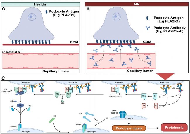 圖1. 原發(fā)性膜性腎病的發(fā)病機(jī)制[2]。