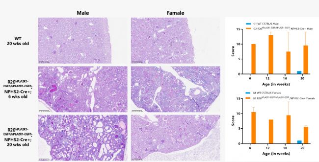基于上述報(bào)道,南模生物通過在C57BL/6 背景下誘導(dǎo)足細(xì)胞特異性表達(dá)人源PLA2R1,建立了一種由抗體介導(dǎo)的自發(fā)膜性腎病模型。