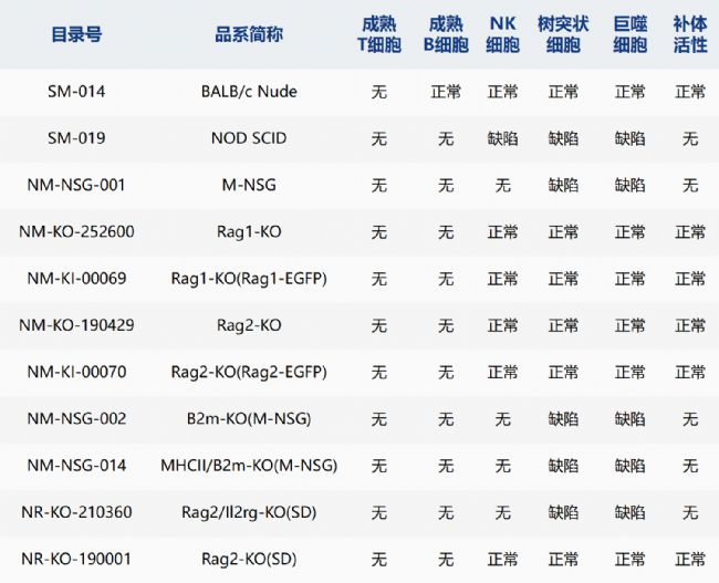 尤其在腫瘤免疫和自身免疫性疾病等藥物研發(fā)方向,免疫缺陷大小鼠模型展現(xiàn)出巨大的應(yīng)用潛力。南模生物始終致力于為藥物研發(fā)提供精準(zhǔn)、可靠的動物模型,助力提升藥物篩選與藥效評估效率,在日益激烈的新藥研發(fā)競爭中搶占先機(jī)。以下為我們提供的部分免疫缺陷大小模型列表,歡迎咨詢了解更多信息!