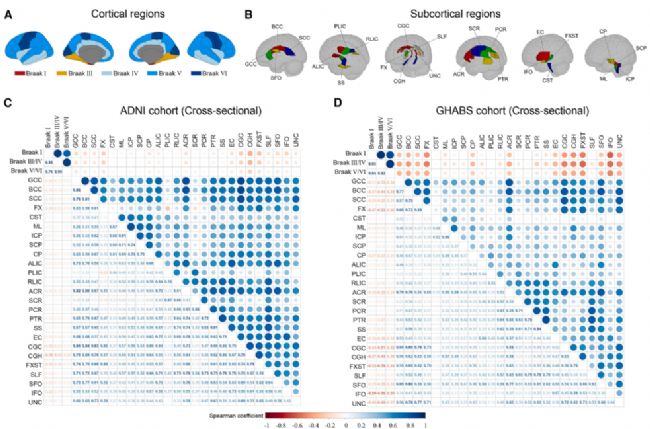 ▲圖:展示了WM腦區(qū)與tau PET的關(guān)聯(lián)
