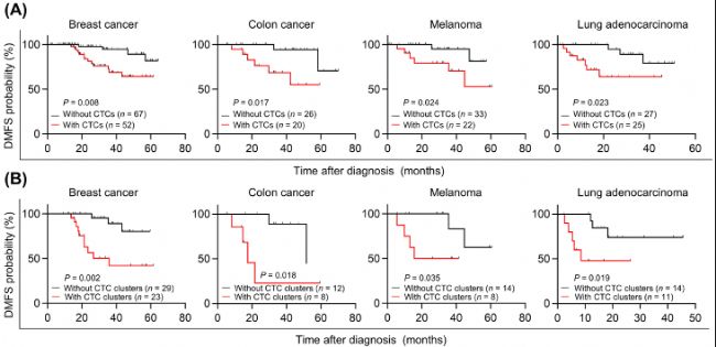 (1)CTC clusters是多種惡性腫瘤的高效轉(zhuǎn)移前體