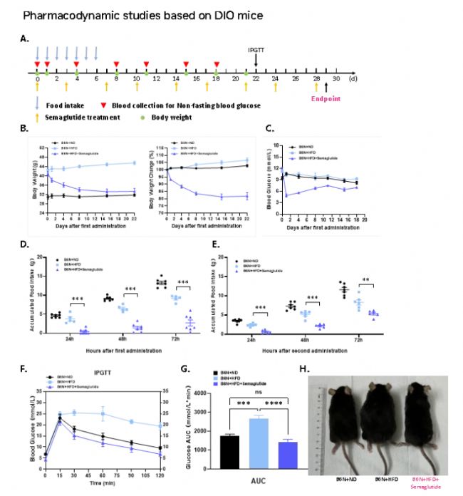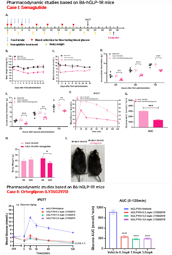 圖3 基于B6-hGLP-1R小鼠的藥效學(xué)研究