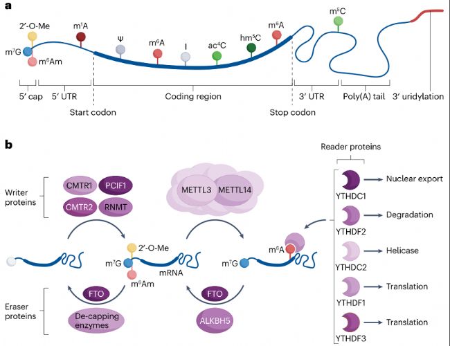 Delaunay S, Helm M, Frye M. RNA modifications in physiology and disease: towards clinical applications. Nat Rev Genet. 2023 Sep 15. doi: 10.1038/s41576-023-00645-2.