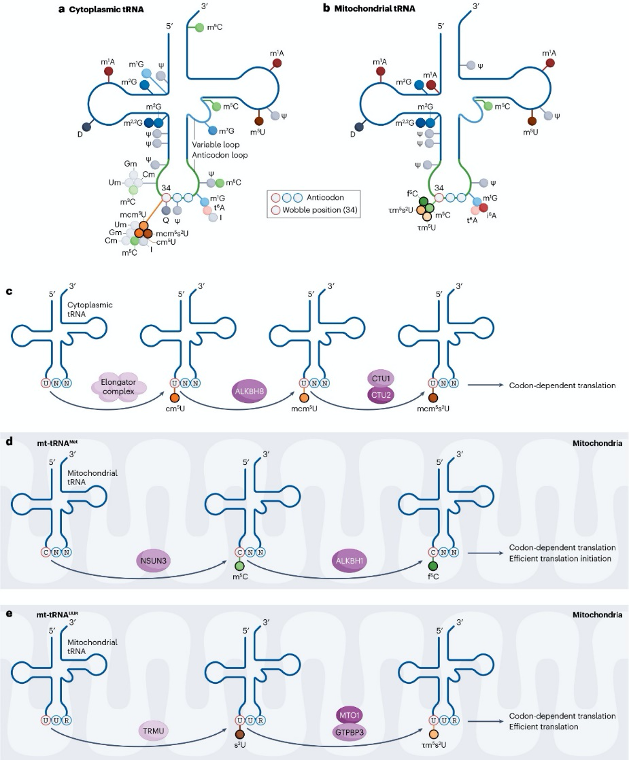 圖3:tRNA反密碼子序列中的核苷酸修飾調(diào)控翻譯效率