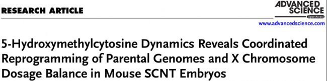 標(biāo)題:5-Hydroxymethylcytosine Dynamics Reveals Coordinated Reprogramming of Parental Genomes and X Chromosome Dosage Balance in Mouse SCNT Embryos(5-羥甲基胞嘧啶動(dòng)態(tài)揭示小鼠SCNT胚胎親本基因組的協(xié)同重編程與X染色體劑量平衡)