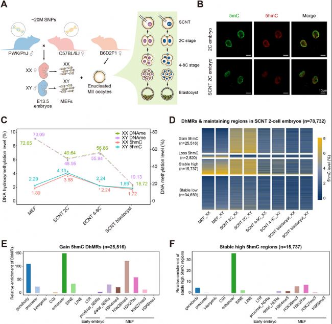 圖1:SCNT胚胎發(fā)育過程中細(xì)胞核5hmC的全基因組動(dòng)態(tài)圖譜