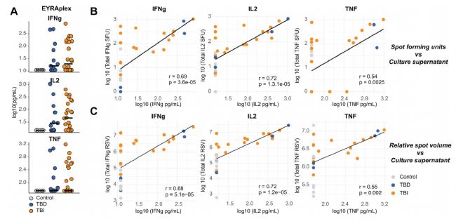 后續(xù)研究團(tuán)隊(duì)通過使用Mabtech多因子EYRAplex檢測方案配合 EYRA 儀器同步分析上清液中的細(xì)胞因子水平(圖3),形成 “細(xì)胞功能 + 分泌量” 的雙重驗(yàn)證。