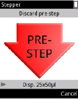 在Stepper連續(xù)分液模式中,會自動添加“預(yù)步驟”作為第一步,對于“預(yù)步驟”的分液建議直接棄掉或者返回原溶液中。為了減少液體浪費,預(yù)步驟的體積優(yōu)化為設(shè)定體積的3%左右。例如,一把10-300μl的移液器,預(yù)步驟體積大概為9μl。