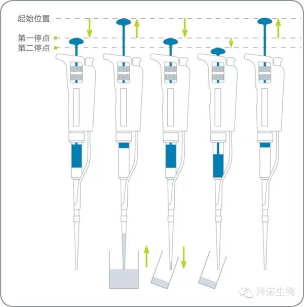 ③緩慢、平穩(wěn)地松開按鈕,吸上液樣。