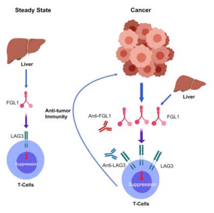 淋巴細胞活化基因3 (LAG-3)是一種主要存在于活化T細胞上的轉基因膜蛋白,其主要作用是作為一種表達抑制信號的受體。纖維蛋白原樣蛋白1 (FGL1)是一種肝臟分泌的蛋白質,可以抑制抗原特異性T細胞活化。
