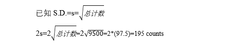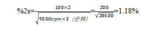 因此,最終結(jié)果可表示為 9500 ± 113 CPM,F(xiàn)在,我們已經(jīng)計(jì)算了計(jì)數(shù)率的 2s 值,那么該如何計(jì)算 %2s(使用核計(jì)數(shù)儀分析樣品時(shí)通常打印輸出的值)?