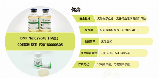 在基因治療研究火熱的今天,植物源重組人血清白蛋白 OsrHSA 產(chǎn)量穩(wěn)定成分明確,同時由于植物源重組人血清白蛋白 OsrHSA 具有優(yōu)秀的相容性,其可以提升病毒載體的穩(wěn)定性,降低其免疫原性。因此,植物源重組人血清白蛋白 OsrHSA 可成為基因治療研究的新選擇。