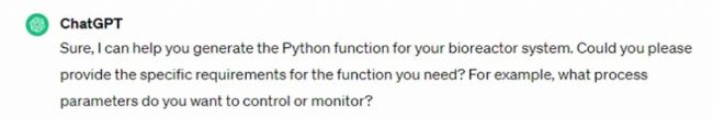(2)根據(jù)提示向AI描述想要實(shí)現(xiàn)的生物工藝控制需求,包括輸入輸出參數(shù)、控制邏輯等。注意盡量用清晰、簡(jiǎn)潔的語(yǔ)言,并且包含盡可能多的細(xì)節(jié),這樣有助于AI生成準(zhǔn)確的UDF代碼。