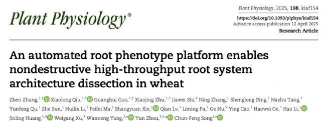 分享一篇河南大學宋純鵬團隊關(guān)于利用高通量根系表型平臺解析小麥根系構(gòu)型的遺傳基礎的研究成果于2025年4月12日發(fā)表在國際學術(shù)期刊Plant Physiology上,以“An automated root phenotype platform enables nondestructive high-throughput root system architecture dissection in wheat”為題的文章。
