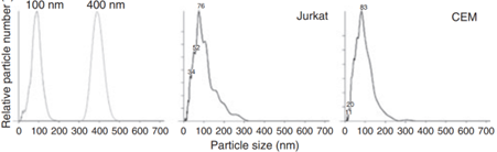 《Nanoparticle tracking analysis monitors microvesicle and exosome secretion from immune cells》研究中(圖4),NTA 被用于監(jiān)測(cè)免疫細(xì)胞(如 Jurkat T 細(xì)胞、樹突狀細(xì)胞)在刺激(離子載體、LPS)或抑制(基因敲低、分泌抑制劑)條件下的 EVs 分泌動(dòng)態(tài)。NTA 可動(dòng)態(tài)追蹤 EVs 濃度變化,如離子載體刺激使 Jurkat T 細(xì)胞 EVs 濃度增加 43%-126%,LPS 激活樹突狀細(xì)胞后 EVs 分泌 48 小時(shí)達(dá)峰值;通過粒徑分布區(qū)分微囊泡(100-1000 nm)與外泌體(30-150 nm),發(fā)現(xiàn)免疫細(xì)胞分泌的 EVs 以 70-90 nm 為主(圖5);結(jié)合抗 CD45 免疫磁珠去除 T 細(xì)胞來源 EVs,NTA 信號(hào)減少 60%,驗(yàn)證檢測(cè)特異性。該技術(shù)為免疫細(xì)胞 EVs 分泌與激活狀態(tài)的關(guān)聯(lián)研究提供了精準(zhǔn)的定量工具。