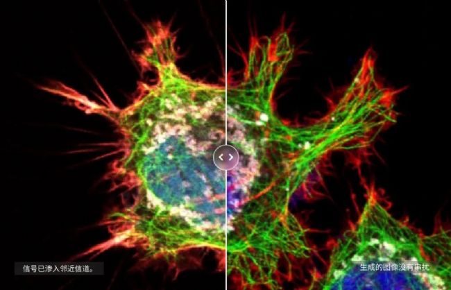 在多色共聚焦顯微鏡中,熒光探針的良好光譜分離對(duì)于獲得高質(zhì)量結(jié)果和在實(shí)驗(yàn)中包含更多熒光探針至關(guān)重要。在成像之前,仔細(xì)優(yōu)化樣品和儀器設(shè)置在減少不必要的光譜重疊引起的偽影方面起著重要作用。曾幾何時(shí),圖像采集后幾乎沒(méi)有什么可以做的來(lái)改善結(jié)果,但通過(guò)光譜解混方法,現(xiàn)在可以在采集后解決重疊問(wèn)題,盡管成像條件不理想。值得注意的是,在共聚焦平臺(tái)上實(shí)施壽命成像的開(kāi)創(chuàng)性進(jìn)展,現(xiàn)在使得強(qiáng)大的熒光壽命能力能夠無(wú)縫集成到共聚焦顯微鏡工作流程中,為科學(xué)家提供了區(qū)分以前無(wú)法通過(guò)光譜解混區(qū)分的熒光探針的能力。
