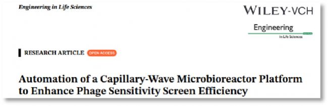 德國(guó)布倫瑞克工業(yè)大學(xué)生化工程研究所的團(tuán)隊(duì)于2025年在《Engineering in Life Sciences》雜志發(fā)表了名為《Automation of a Capillary-Wave Microbioreactor Platform to Enhance Phage Sensitivity Screen Efficiency》的文章。在該項(xiàng)研究中,科研團(tuán)隊(duì)開發(fā)了一種自動(dòng)化毛細(xì)管波微型生物反應(yīng)器(capillary-wave microbioreactor,cwMBR)平臺(tái)。通過(guò)納升小體積的精準(zhǔn)加樣技術(shù),實(shí)現(xiàn)了噬菌體篩選的動(dòng)態(tài)檢測(cè),為噬菌體篩選提供了新的思路。