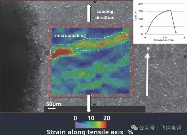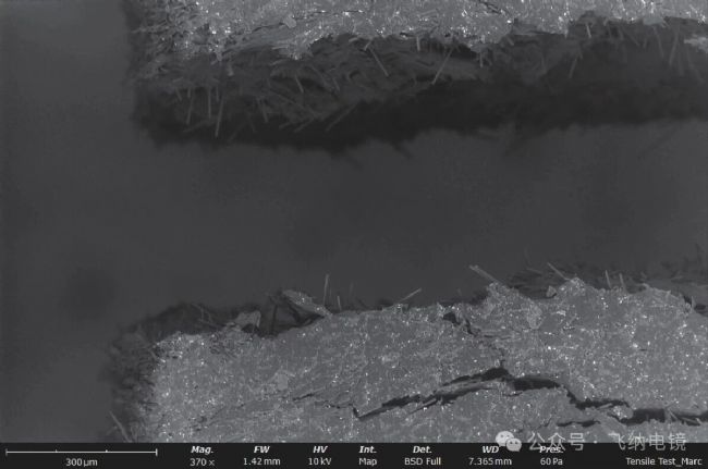使用 Phenom XL 臺(tái)式掃描電鏡結(jié)合拉伸樣品臺(tái),在低真空下實(shí)時(shí)觀察拉伸過程。加載速率為 0.033mm/min,實(shí)時(shí)記錄拉力與位移。
